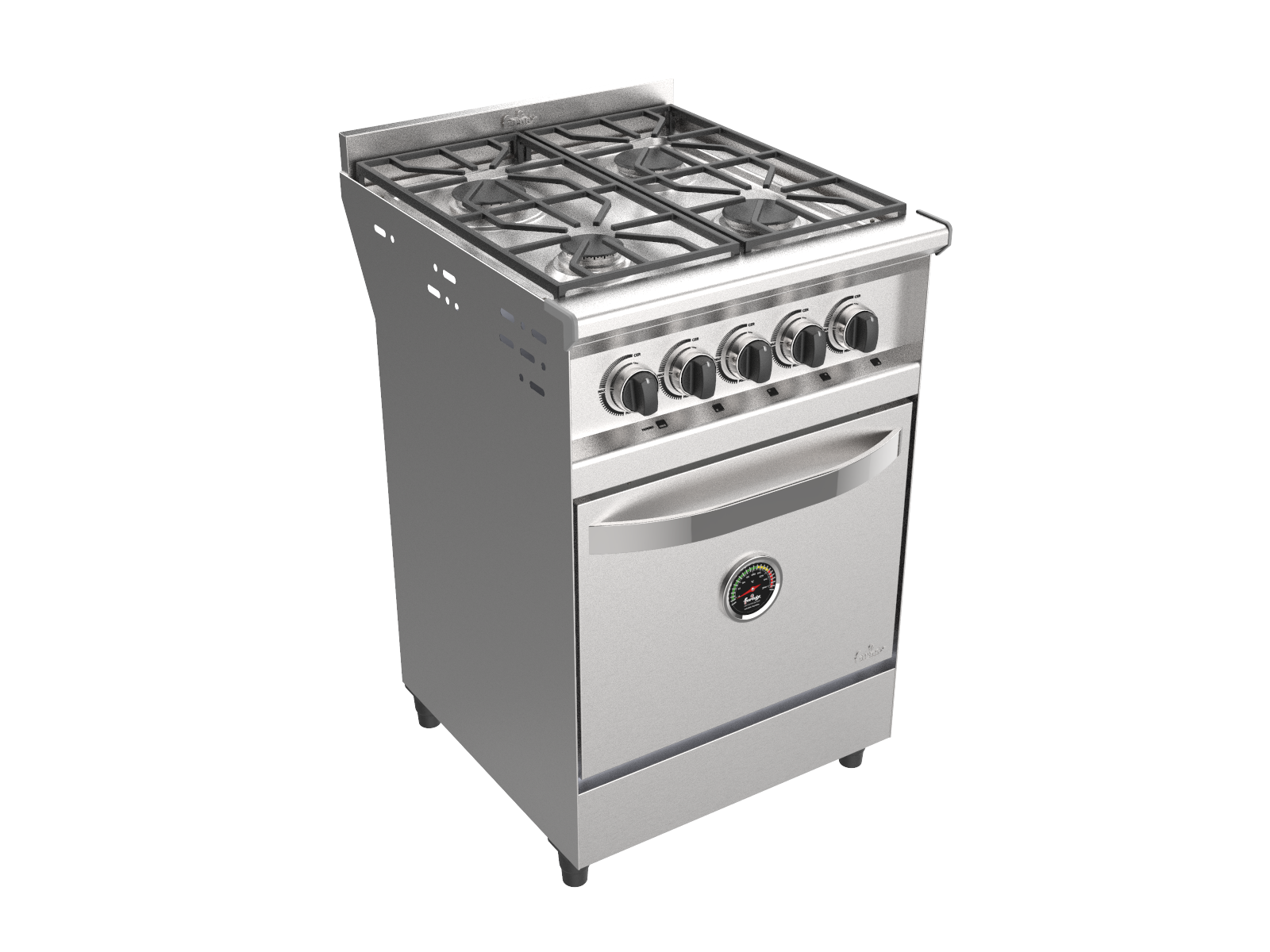 Su gabinete y puerta de horno es de acero inoxidable, tiene 4 hornallas de alta eficiencia, posaolla vitrificado.