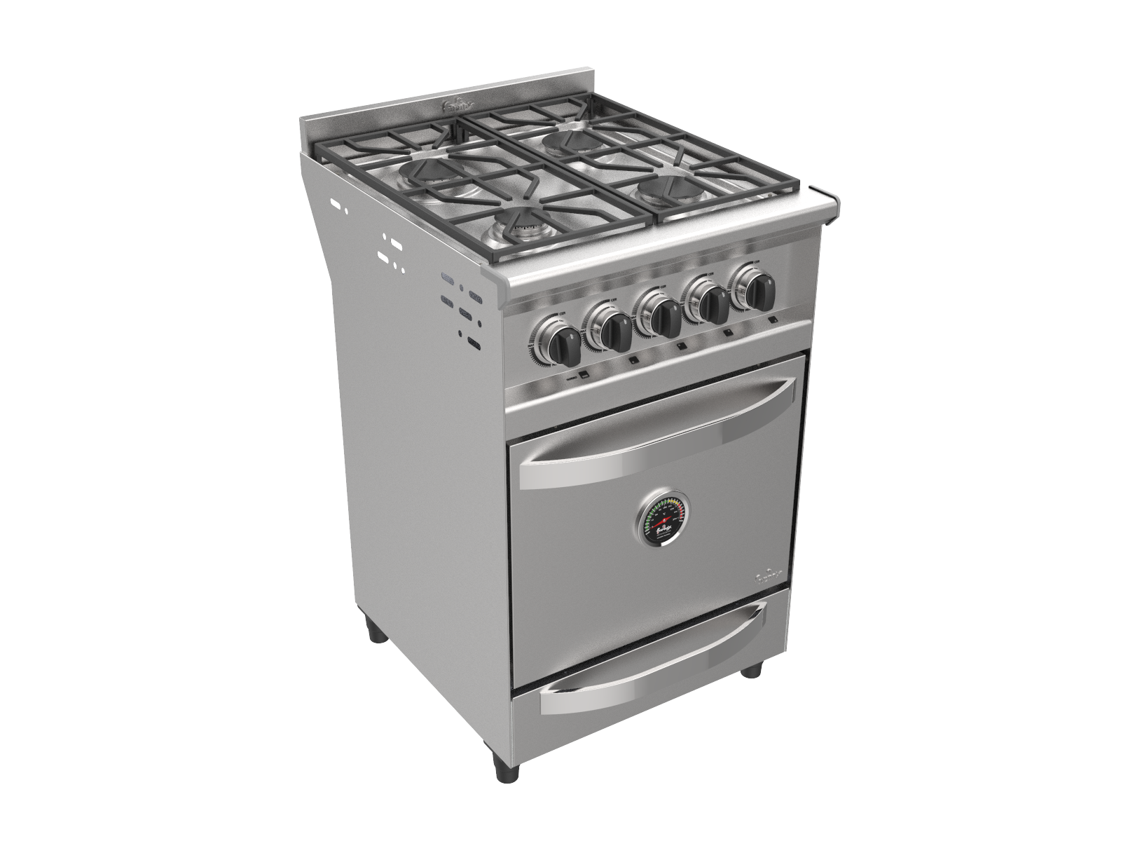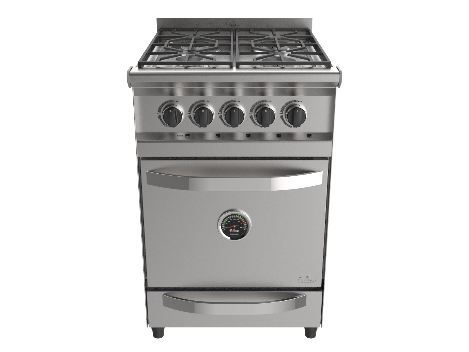 Su gabinete y puerta de horno es de acero inoxidable, tiene 4 hornallas de alta eficiencia, posaolla vitrificado.